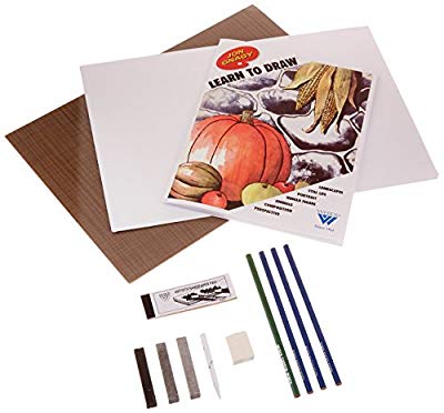 MARTIN/F. WEBER-Jon Gnagy Learn to Draw Set. Quality art materials and instructions combine to teach this media in this original set from Jon Gnagy’s ‘Learn to Draw’ series. This set contains one 64- page instruction book, sketching paper, three drawing pencils, one carbon pencil, three sketching chalks, one kneaded eraser, one shading stump, one sandpaper sharpener, and one laptop drawing surface. Conforms to ASTM D4236. Imported.